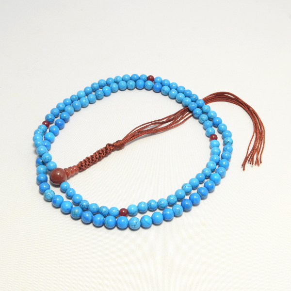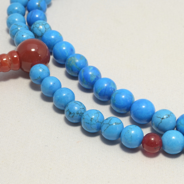商品説明 | 主玉(ハウライトターコイズ) 約 8mm 天玉(瑪瑙) 約 6mm 親玉(瑪瑙) 約 12mm 輪の引き伸ばし長さ 約 40cm |