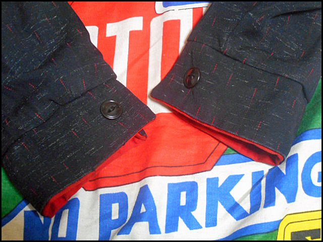 ★激レアな1着★デットストック級ビンテージコットンウールギャバジャン赤白絣柄黒色ブラック50s50年代ロカビリーリバーシブルジャケットM