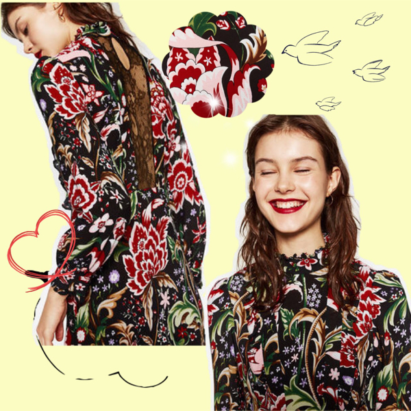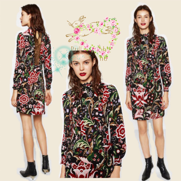 バッグレースフラワー柄&フリルミニワンピース