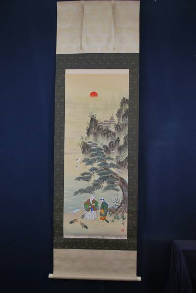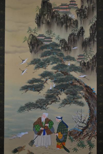 真作/紫峰 蓬莱山高砂図 /掛軸☆宝船☆K-136