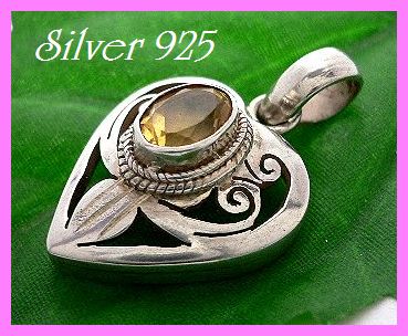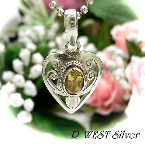 シルバー925銀の天然石シトリン[多面カット]透かしハート ペンダント/ALL50%OFF
