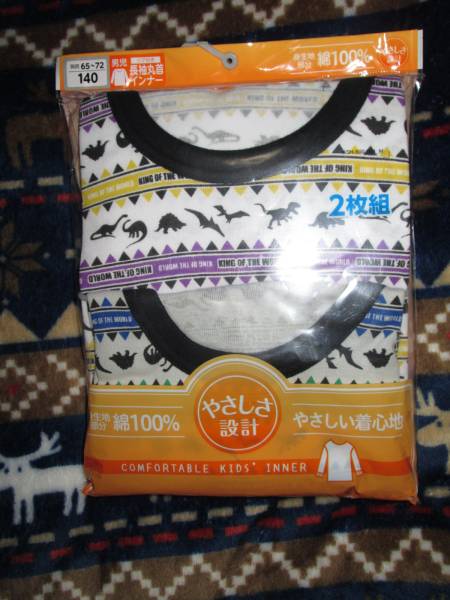 ◇新品!男児長袖丸首インナー140cm恐竜柄2枚組◇