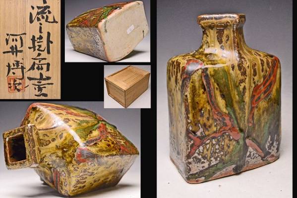 サイズは 114mmx82mmx高さ158mm です。 物故巨匠 河井博次 氏の 作品です。 氏 独特の 釉景 が 素晴らしく 造形も 楽しい 逸品です。 写真を参考の上 入札下さい。 宅配便80サイズにて 発送します。他にも多数出品してます。同梱対応いたします。 タイトルにある『検』とは 検索キーワードの 略称です。