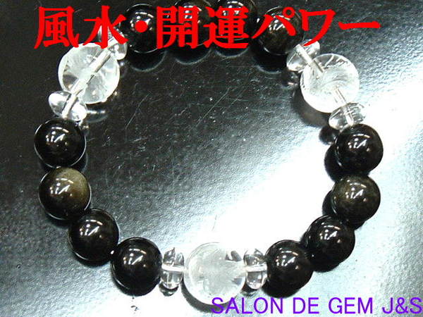 【新品】【鳳凰(火の鳥/不死鳥)】【才能の開花・若返りの石】【高級天然ゴールデンオブシディアン(黒曜石)&高級天然クリスタル 風水・開運ブレスレット】【GO10.0mm/C12.0mm/C8.0mm】【アルマーニ / スパでも使用】(内径:15cm)【浄化済商品】【本数限定】【赤字大処分】【収納ポーチ付】【製作元オークション】
