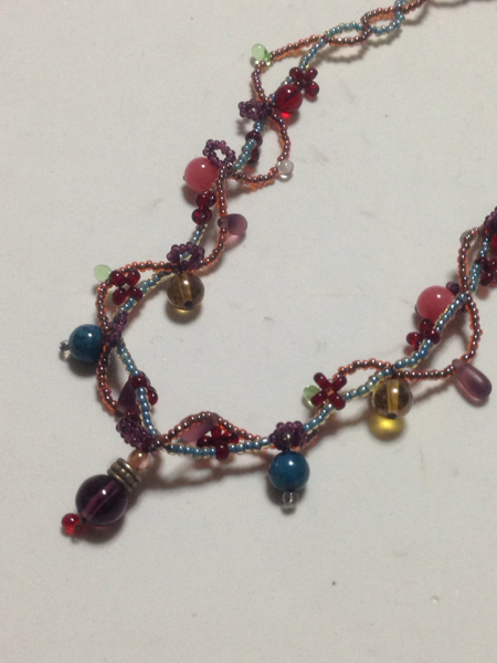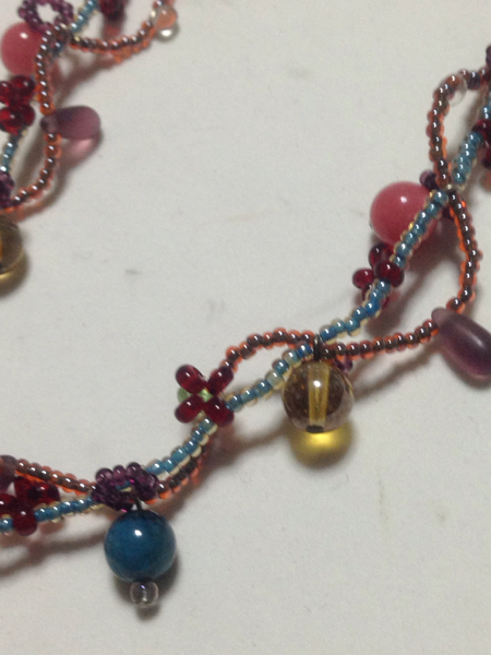 ビーズと天然石のネックレスです、ビーズと天然石のおりなす、可愛いデザインネックレスです、長さは40センチです