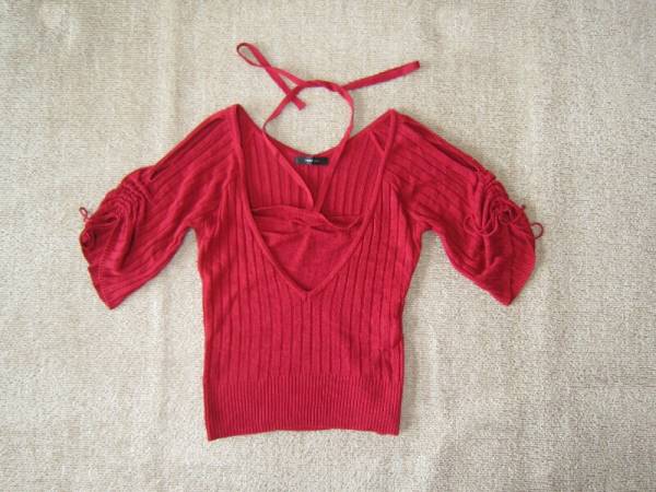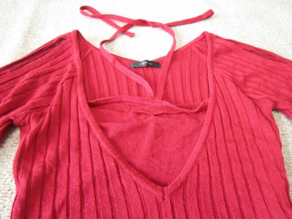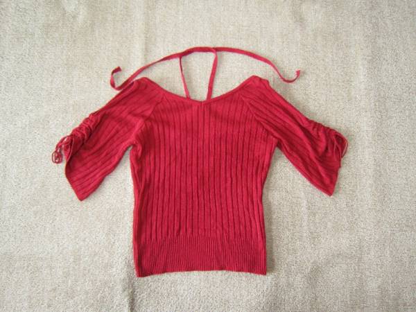 ホルターネックニット 長袖 レッド M 日本製 レディース