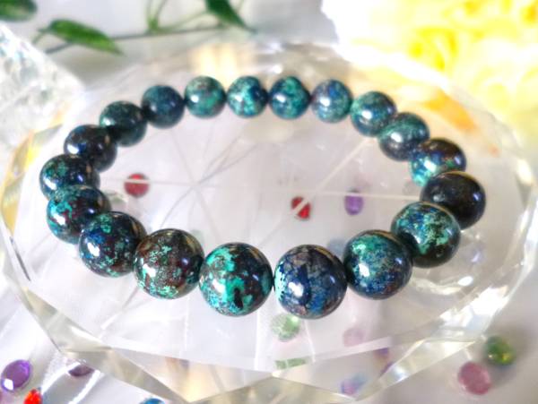 ☆幸運☆ ☆繁栄☆ ☆母なる大地☆ ☆ヒーリングストーン☆ ☆高品質AAA☆ ☆コンゴ産☆ ☆クリソコラ☆ ☆10mm☆ ☆16cm☆ ★ AAA コンゴ産 クリソコラ (10mm) ひと粒の中にいろいろな色彩や表情を見せてくれるクリソコラは シャッタカイト、マラカイト、アズライトなどが混ざり合った ☆不思議な魅力☆を持つ☆ヒーリングストーン☆です♪ 青と緑や黒などが織り成す模様は、深く青い海・緑豊かな森林 そして母なる大地のイメージを醸し出し 情緒の安定・心身の調和・深い安心感などをもたらし活性化させる 大地との結びつきを持った☆波動エネルギーのクリソコラは ネガティブエネルギーの放出、恋愛や人間関係のコミュニケーションなどに 強力なパワーを持ち、勇気と導く力をサポートすることから 幸運と繁栄の象徴として人気の高いパワーストーンです♪ ※ こちらは、コンゴ産の高品質AAAクリソコラで、綺麗なシャッタカイトの深いブルーや マラカイトの鮮やかなグリーンなどの織り成す模様が、シックな雰囲気を醸し出しております♪ ☆着け外しできる☆かわいいチャームお付けいたします☆ ★ サイズ 16cmくらい( 伸縮オペロンゴム使用 ) ※ ほかに、17cmサイズも出品しております♪ ★ 発 送 ★ブレスレットポーチ+プチプチ包装 |