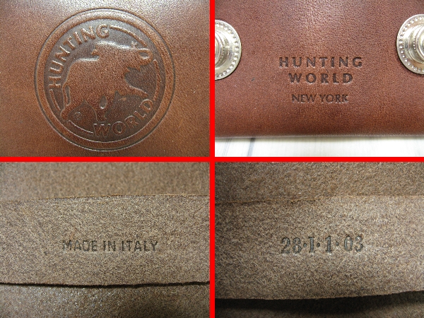 ★★★★★★★★★HUNTING WORLD・ハンティングワールド社は、ボブ・リー氏により設立され、断熱・衝撃緩和に優れた、グリーン・カラーのバチュークロスのバッグ(サファリ・エクスプローラ)で、世界的に有名な、冒険・探検及びアウトドア用バッグ(キャリオールバッグ・ビジネスバッグ・ショルダーバッグ・ウエストポーチ・セカンドバッグ・トートバッグ・カメラバッグ)・ウエア(コート・ジャケット・パンツ・セータートレーナー・セーターポロシャツ・シャツ・フィッシングジャケット等)・ウオレット(長札・二つ折り財布・コインケース)・皮小物・キーホルダー・腕時計・サングラス・携帯ストラップ・携帯電話ケース等の様々な、