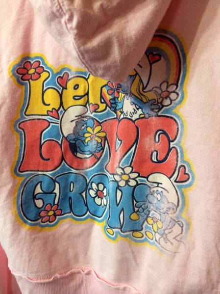 目立った汚れもないですが、プリントにすれた加工がされています。