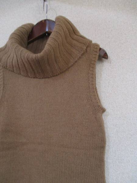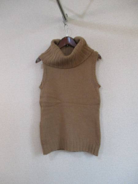 | 商品紹介 | ゆったりとしたエリがオシャレなノースリーブニットです。 色は茶色です。 《素材》 キャメル50% ウール50% |