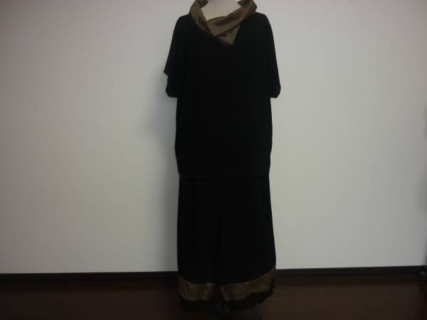 泥大島紬の着物を解いて、新反のブラックフォーマル用の黒生地と共に、大きいサイズ(4Lの方迄、ご着用頂けます)ガウチョパンツをハンドメイド致しました。