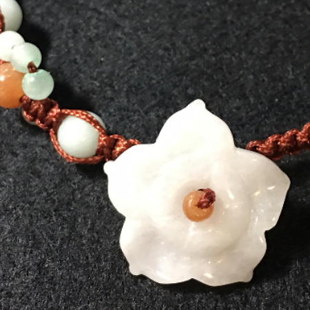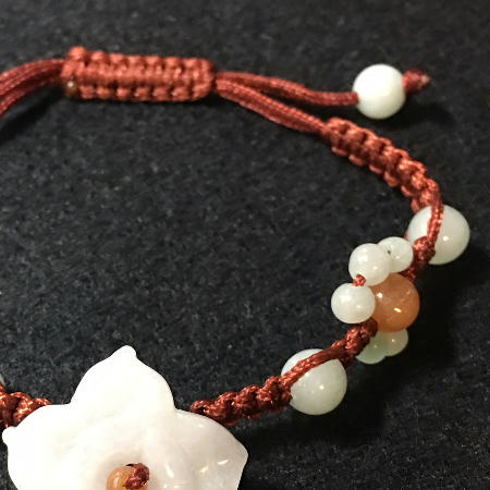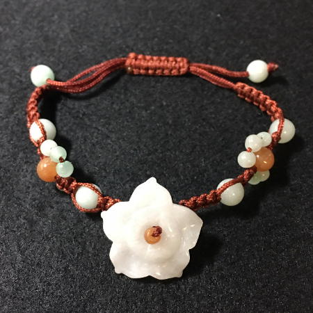 天然石 極上 翡翠 ヒスイ ブレスレット 彫刻細工 花 組み紐 ①