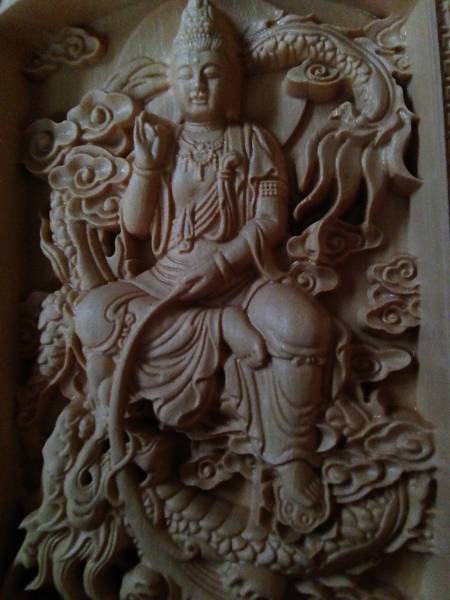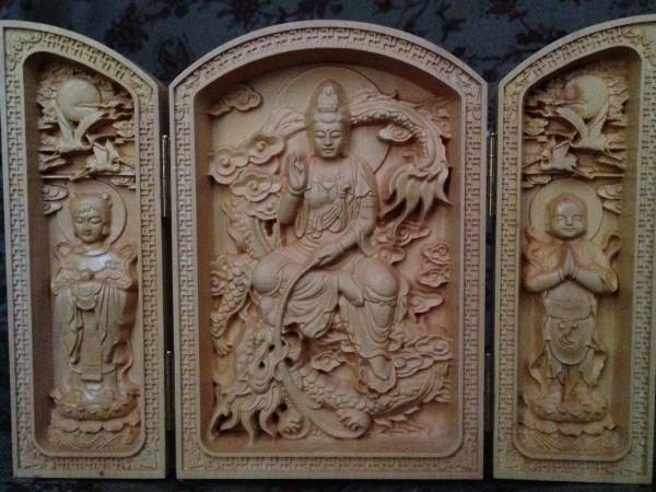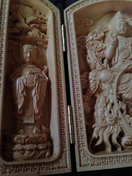 | 卍超細密 木彫り仏像 ◆竜頭 観音◆2 開閉式 小 仏壇 仏箱 | ||||