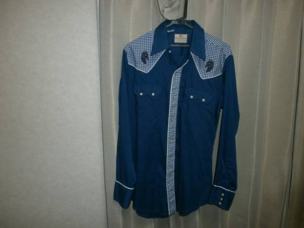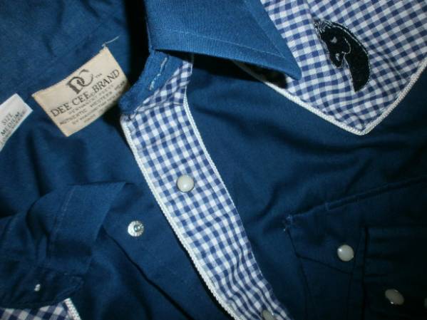 ウエスタンシャツの老舗DEECEEBURANDOサイズ表記M(USAメイド)肩幅46cm袖丈64(肩のつなぎ目から袖先)cm身幅57.5cm着丈(襟の付け根からすそ先まで)81.5cm素人採寸ですので誤差があります。目立つ汚れ、キズは見当たりません。古着ですのでノークレーム、ノーリターンでお願いいたします。アドレスつきの質問にはお答えできません。ご了承ください。評価点数5未満でマイナスのある方や、マイナス評価が5以上ある方は入札しないでください。紺にギンガムチェック、馬刺繍、パイピングなどこだわりのおしゃれシャツです。紺が着やすく演出しています。スナップボタン