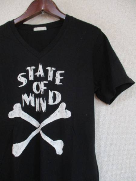 | 商品紹介 | 黒地に白のプリントが入ったTシャツです。 衿はV字でスッキリとした形です。 《素材》 綿100%  |