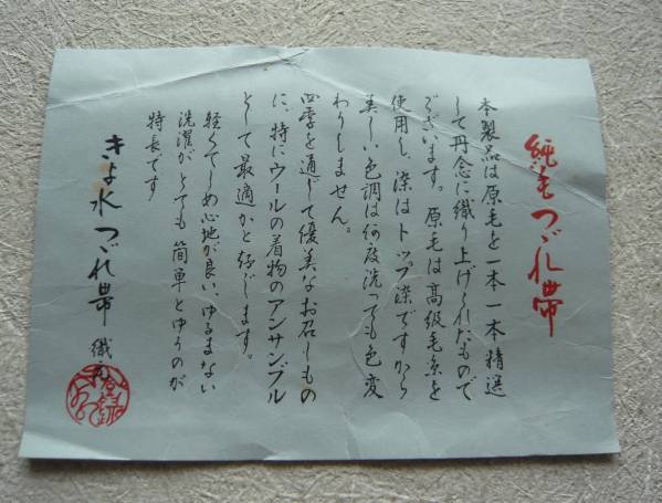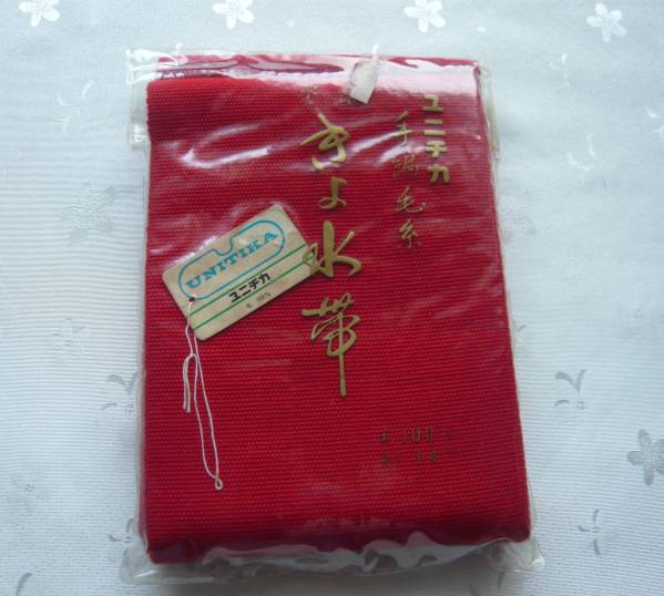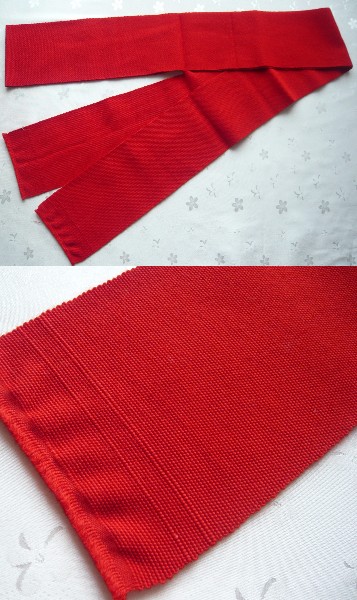 未使用美品★帯★きよ水つづれ帯赤色★単衣仕立★ 手織り毛100%☆昭和レトロ和装小物★145 |