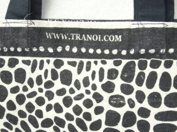 ● 日本未発売 TRANOI パリ ファッション展示会 非売品 バッグ 新品 コットン ブラック ホワイト パッチワーク風モチーフ 両面デザイン