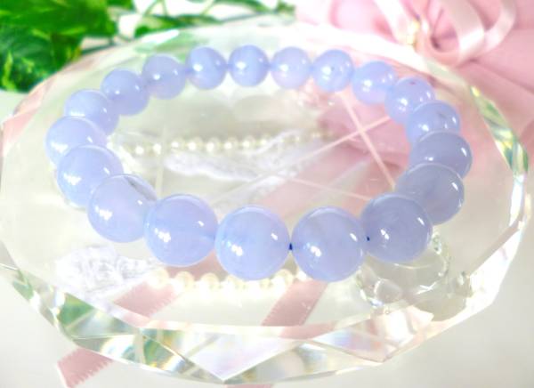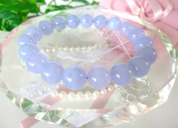 リラックスヒーリング☆ 愛を育む    穏やかな癒し  高品質AAA    ☆ナミビア産☆  ☆天然色☆  ブルーカルセドニー   10mm☆   ☆16cm