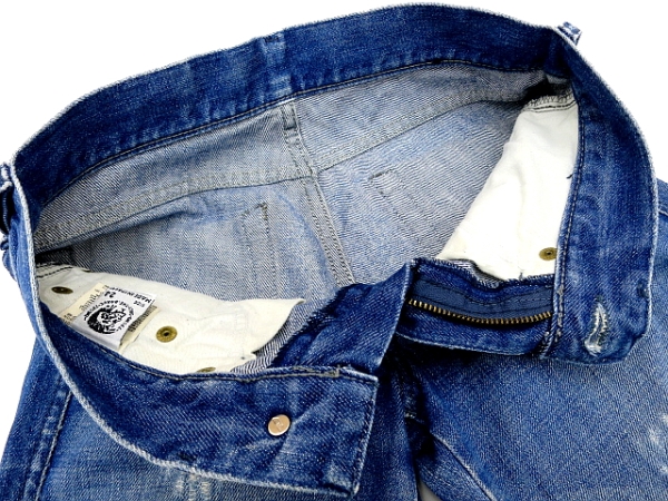 ブルーデニム ヴィンテージウォッシュ加工&クラッシュ加工