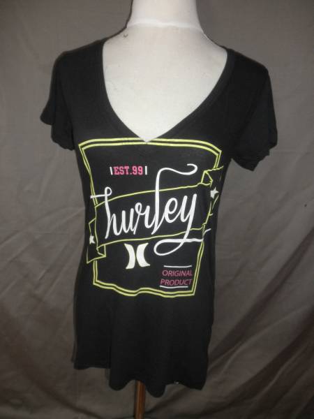 USA購入 サーフ系《Hurley》綺麗なLOGOプリントVネックT US L BK