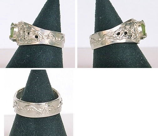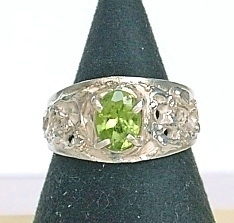 送料無料! ハンドメイド(手作り)の1点物です。 純銀に透かし柄をいれて立体感を出し、 さらに細かくカットされたペリドットを加えて上品に仕上げました。 ライトグリーンのぺりドットとシルバーカラーがマッチしてとても素敵です。 ハンドメイドならではのデリケートな細工ときめ細やかな美しい輝きが特徴です。 同じものは2度と作れません。 あなただけの世界でたったひとつのリングです。 問屋を通さず、メーカー直結ならではのプライスでご提供いたします。 絶好のチャンスをお見逃しなく!! 是非おすすめします。 いつまでも純銀の美しさを保つお手入れ法とシルバークロスをプレゼント致します。 素 材:本体は純銀(99.9%)・ペリドット(オーバルカット) サイズ:15号 リング巾・11×5mm ペリドット・8×6.5mm ri-106 市場価格の5割引でご奉仕いたします。 無料でラッピング致します。ご希望の方はその旨お申し出下さい。 | |||