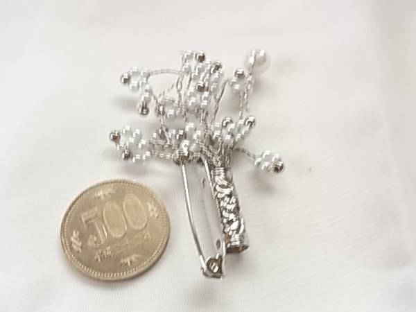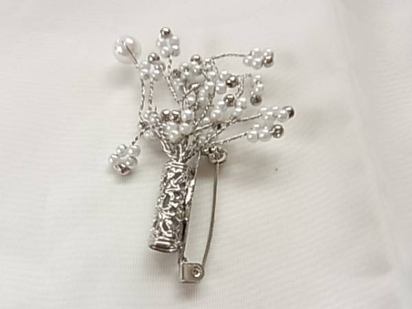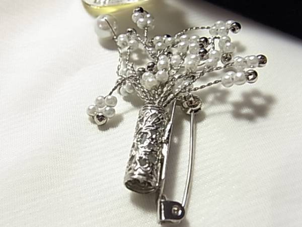 ハンドメイド?パール調ビーズ使いデザインの花束ブローチ△++
