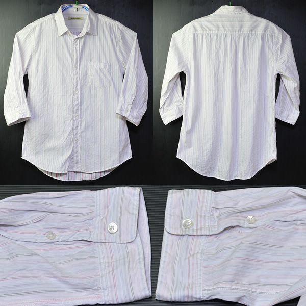 古着●ジャーナルスタンダード 七部袖シャツ ピンストライプ L 汚 xwp