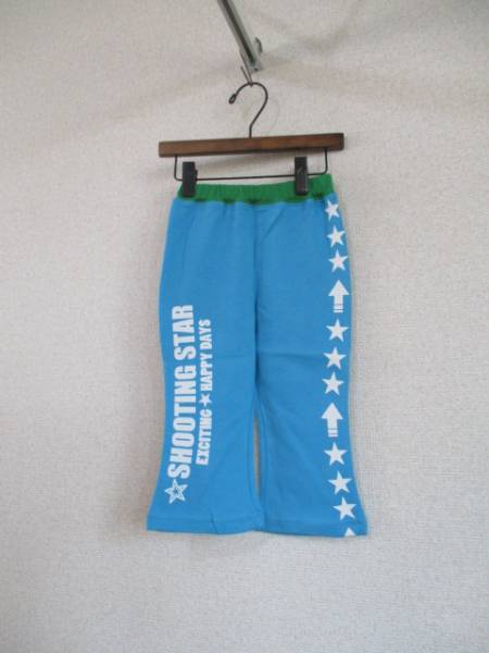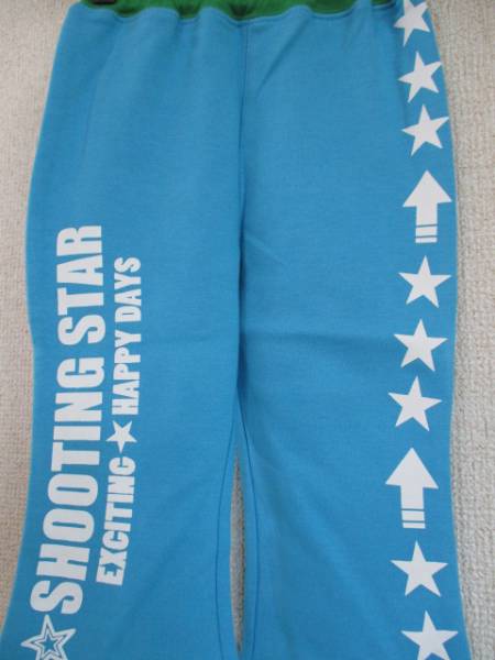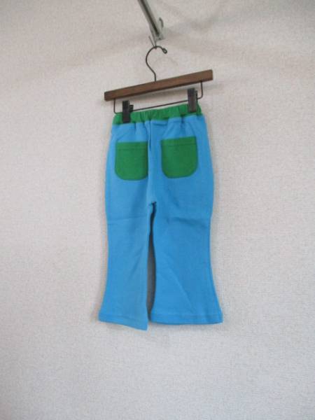 | 商品紹介 | ブルーのスエットパンツです。 両サイドの白のプリントが入っています。 ウエストと後ろポケットは緑です。 ベルボトムっぽい形です。 《素材》 綿100% |