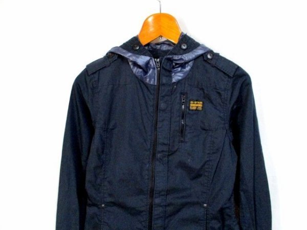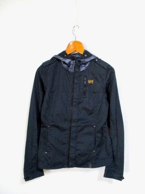 G-STAR RAW フード付きジャケットです。フロントの開閉はジッパーとボタンです。サイズはSです。カラーは紺です。レディースになるかメンズになるか分かりませんのでサイズやデザインなど画像でご確認お願い致します。