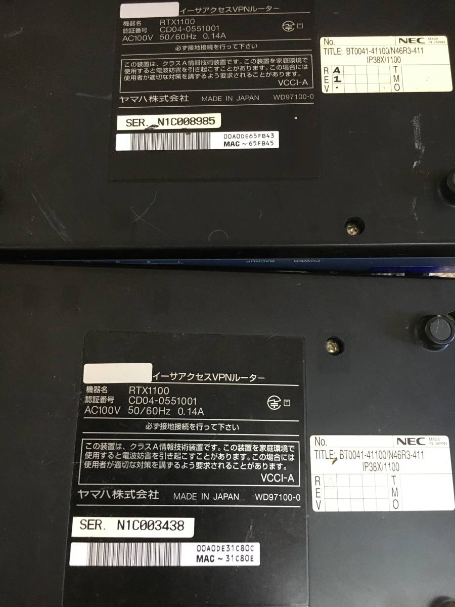 D986 YAMAHA/ヤマハ RTX1100 イーサアクセス VPNルーター 2台セット