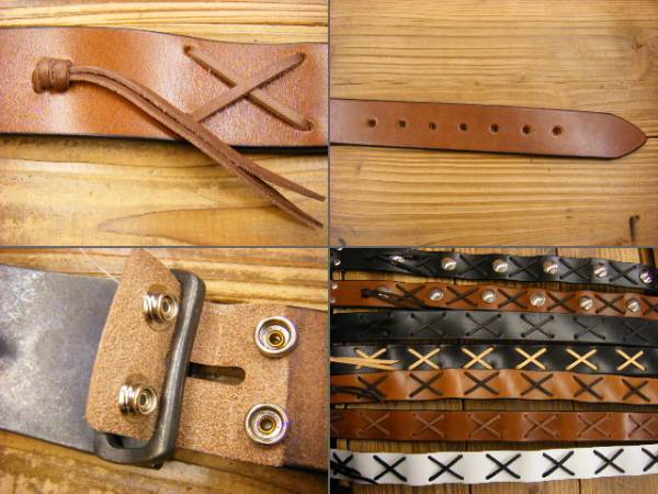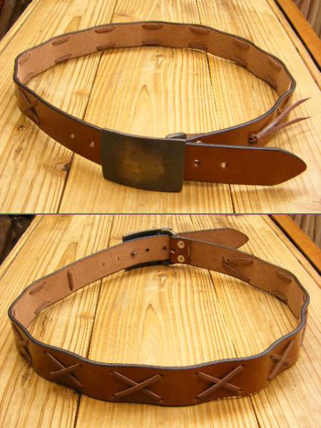 当店オリジナル製作!! クロスレース飾りベルト新品[(茶ベルト)×(茶革ひも)][XL=約95cm][バックル2種付き]が送料無料! ※レッドムーン風