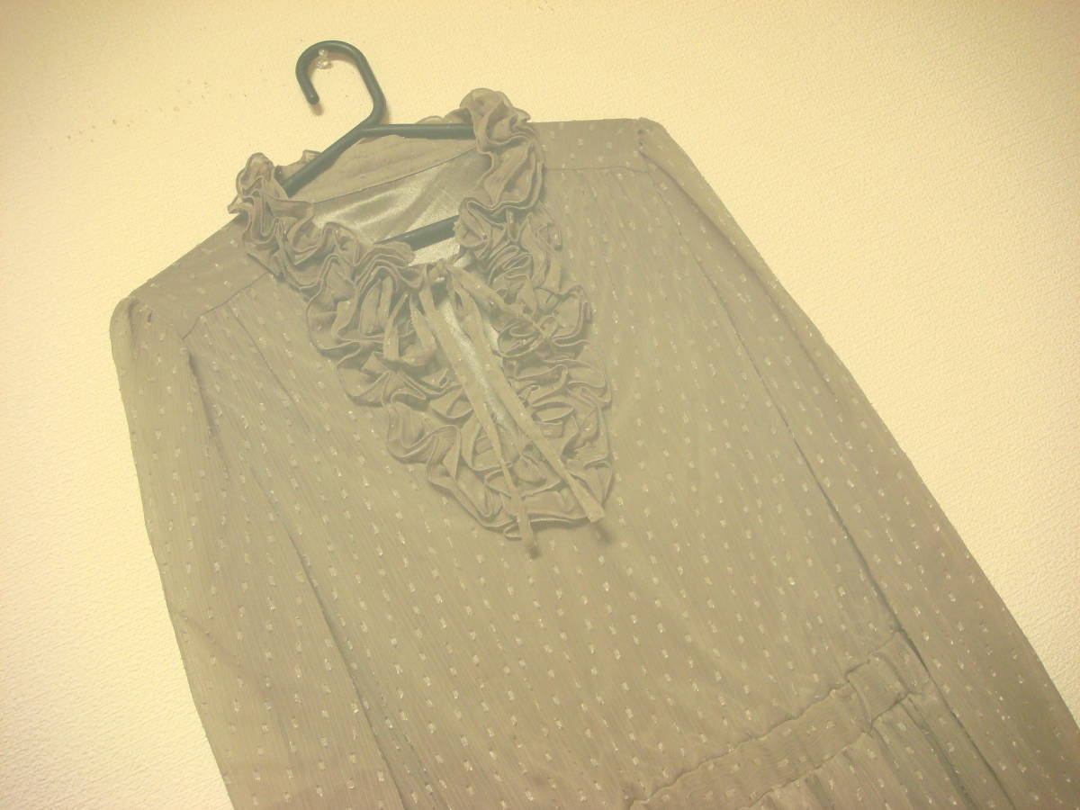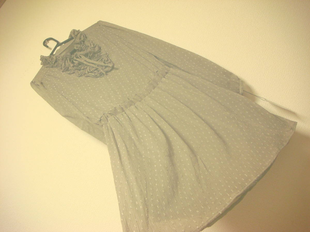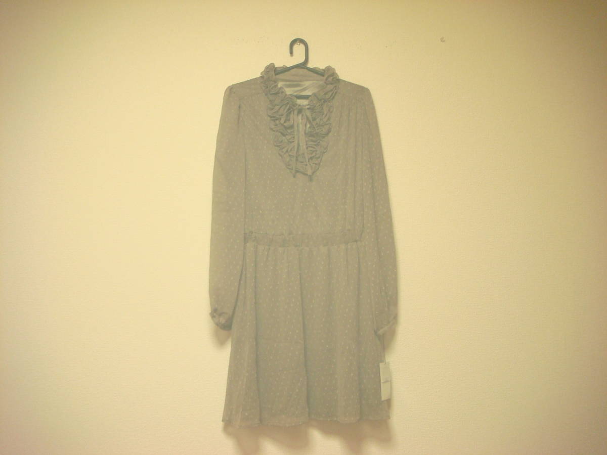 JYAIRO  ジャイロ ドットシフォン生地 フリル おリボン付き ワンピース チャコールグレー系 タグ付き未使用 新品
