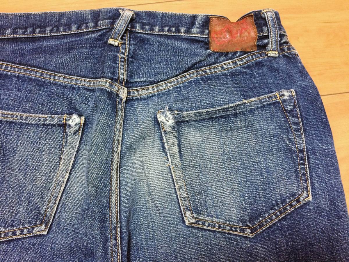 ・状態:赤タブ欠損、カカト踏んで破れあります。尻まわり摩耗ステッチほつれの再縫いがあります。その他綿糸のほつれところどころあります。磨耗等の使用感ご了承ください