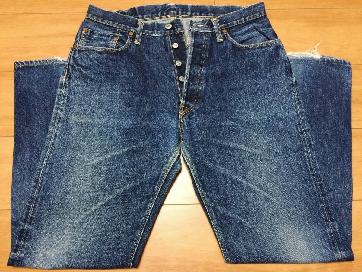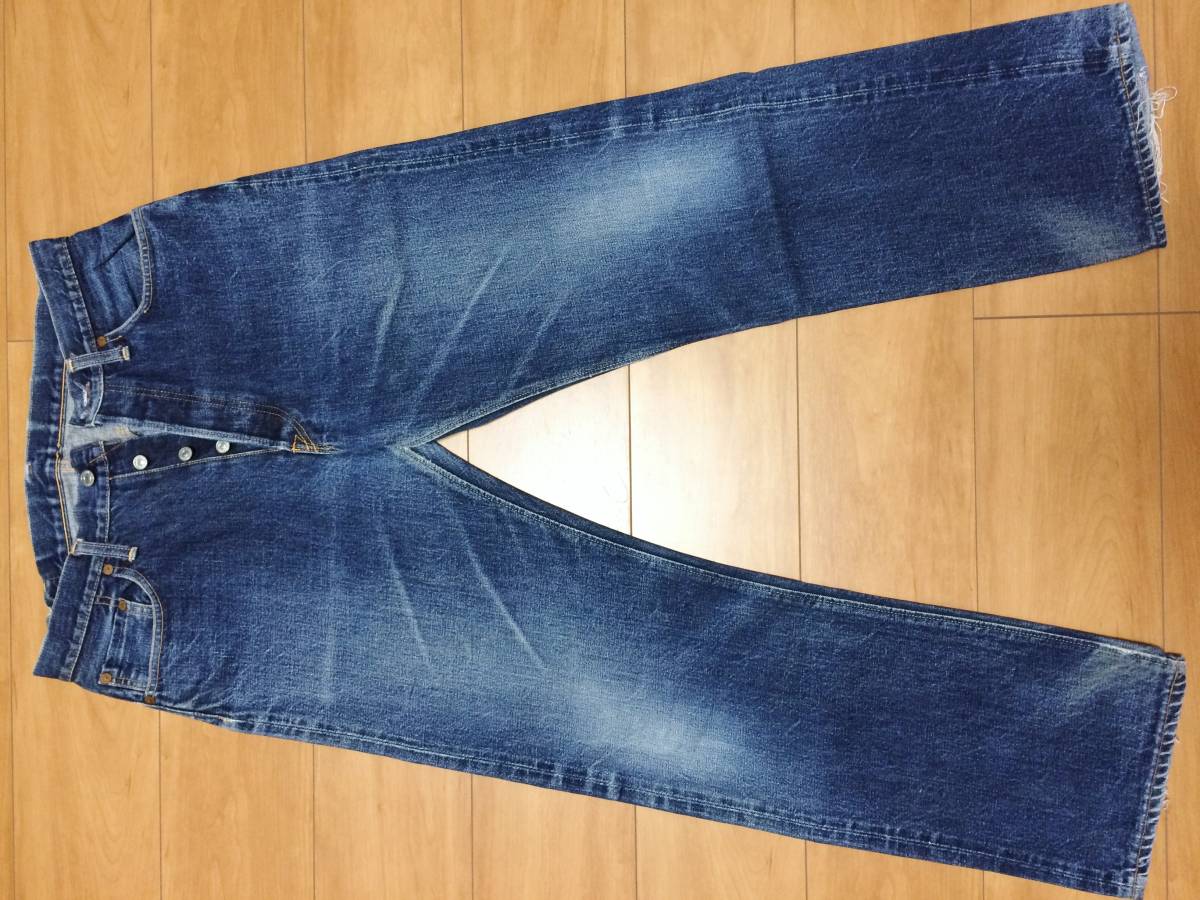 ・写真みてもわかるようによい色落ち。縦落ち、ヒゲ、サイドのアタリ、完璧です。新品からガンガンに穿き込まれています