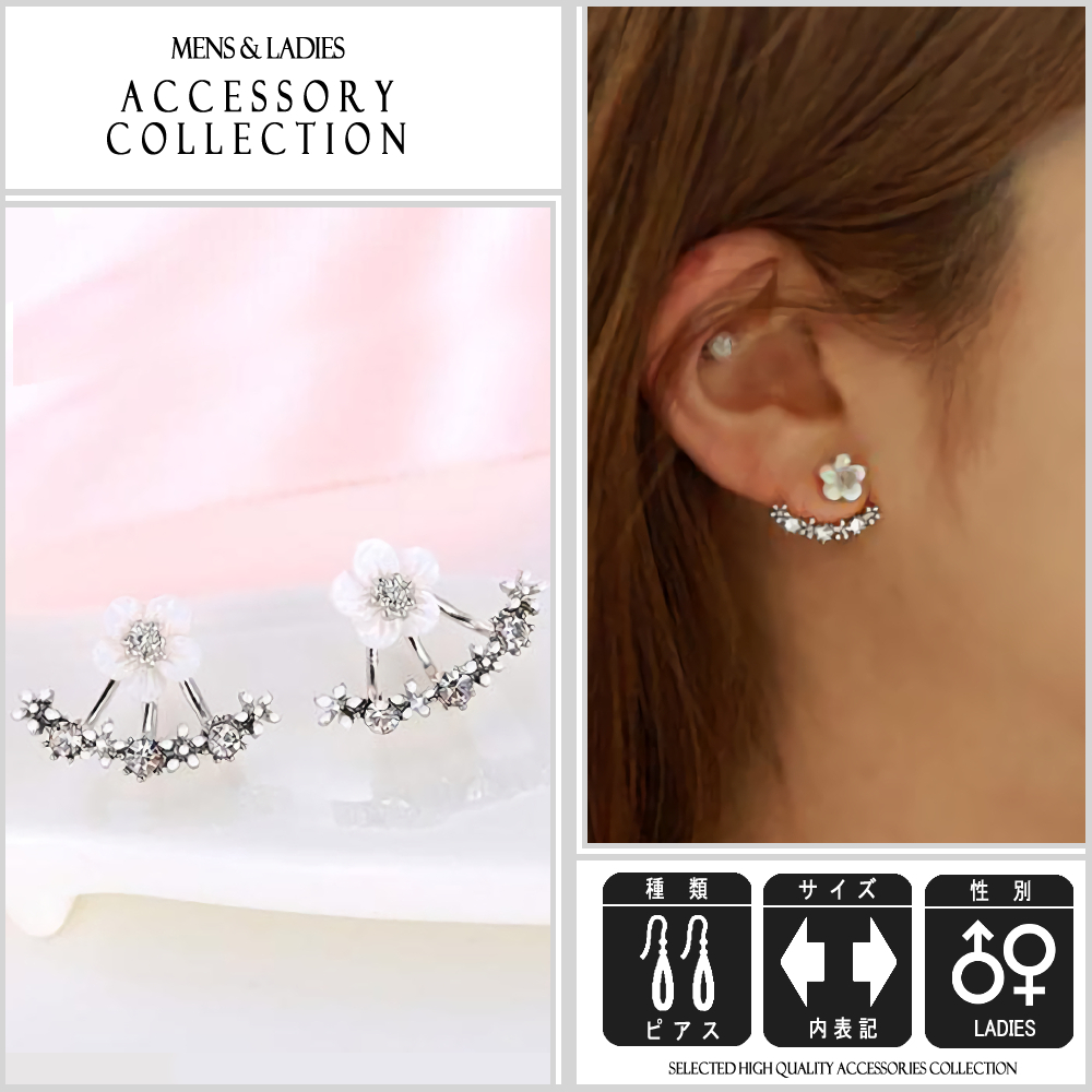 [ 送料0円 ] フラワーモチーフピアス 2個組 銀 シルバー 花 モチーフアクセント 清楚 可愛い 綺麗 おしゃれ 小さい 目立たない さりげなく