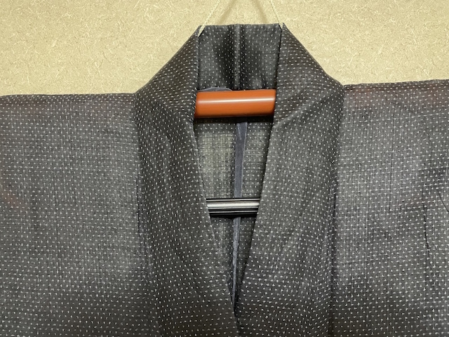 右前身頃の裏の腰辺りに同布の継ぎあり。(縦1.5センチ横2センチ)目立たない