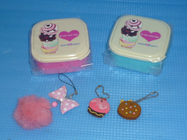 | b★非売品・未使用★バスキン・ロビンス(サーティワン)デザートケースx2個とスイーツ ラバーキーカバーキーチェーン付きx2種とオマケ | |