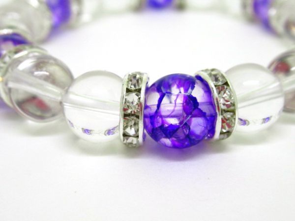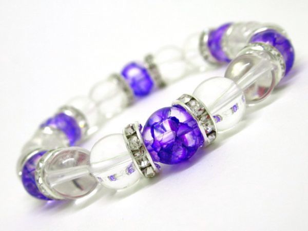 【パープルクラック水晶&水晶】 天然石ブレスレットパワーストーン