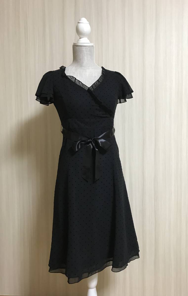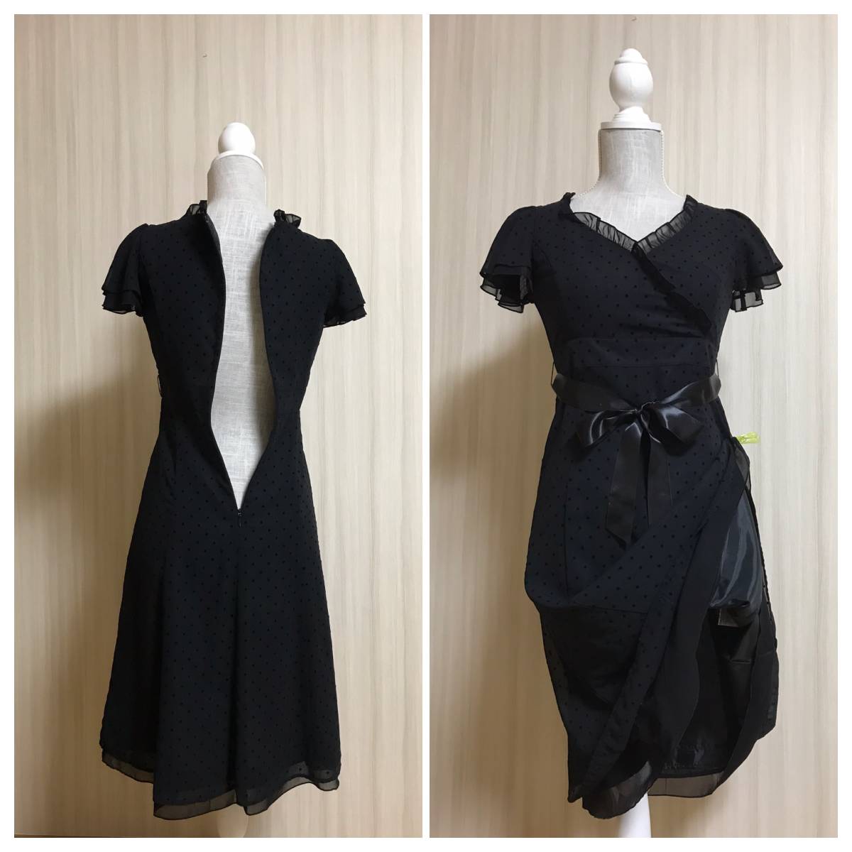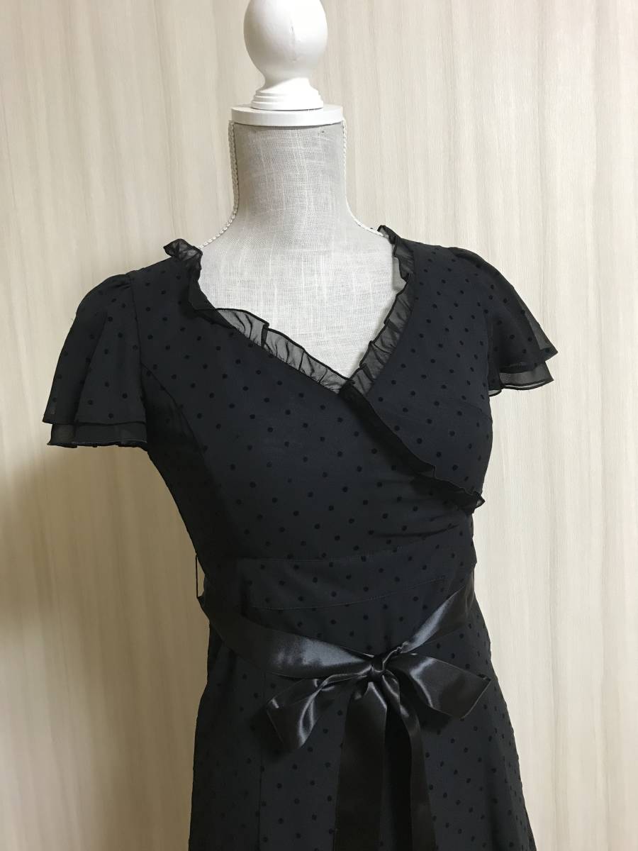 ●説明:透かし模様のドット柄がエレガントなカシュクールドレス、ワンピースです^_^
