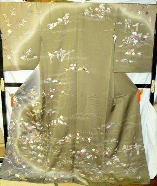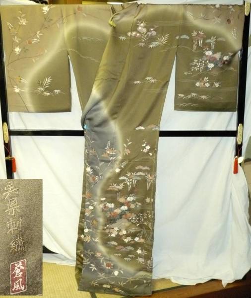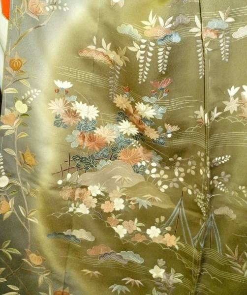 【呉県手刺繍訪問着☆-仮縫い】未仕立♪共八掛付♪