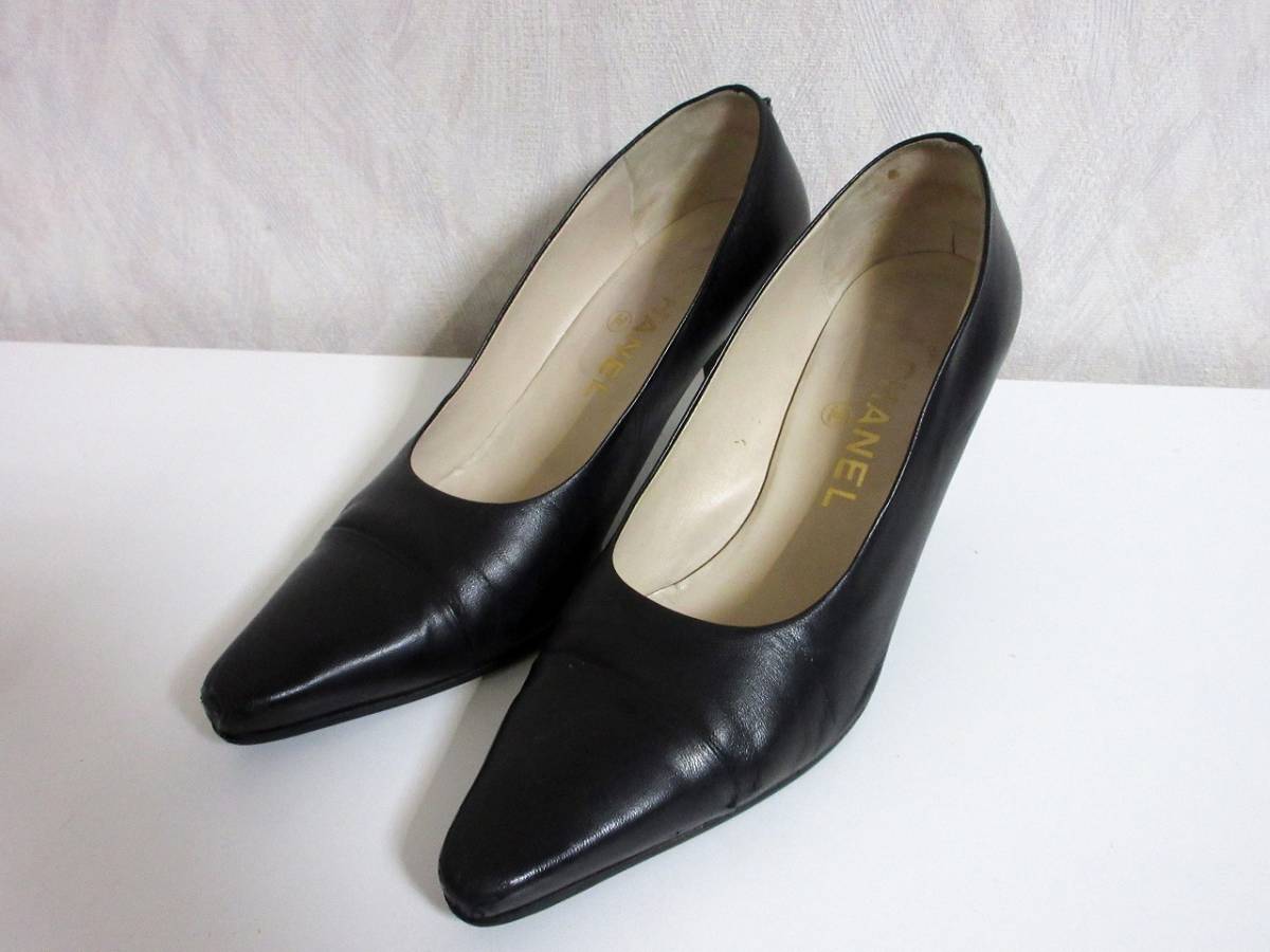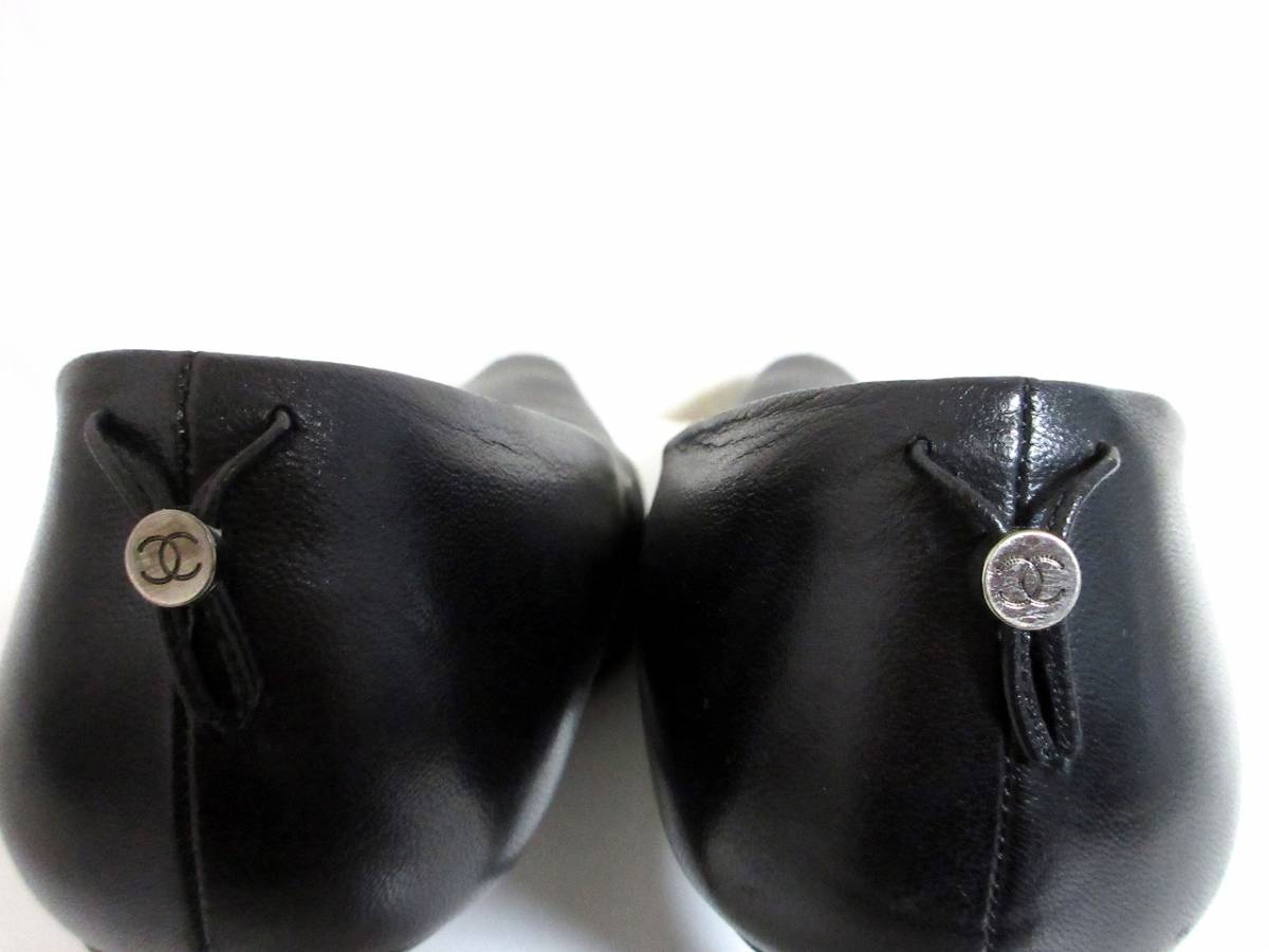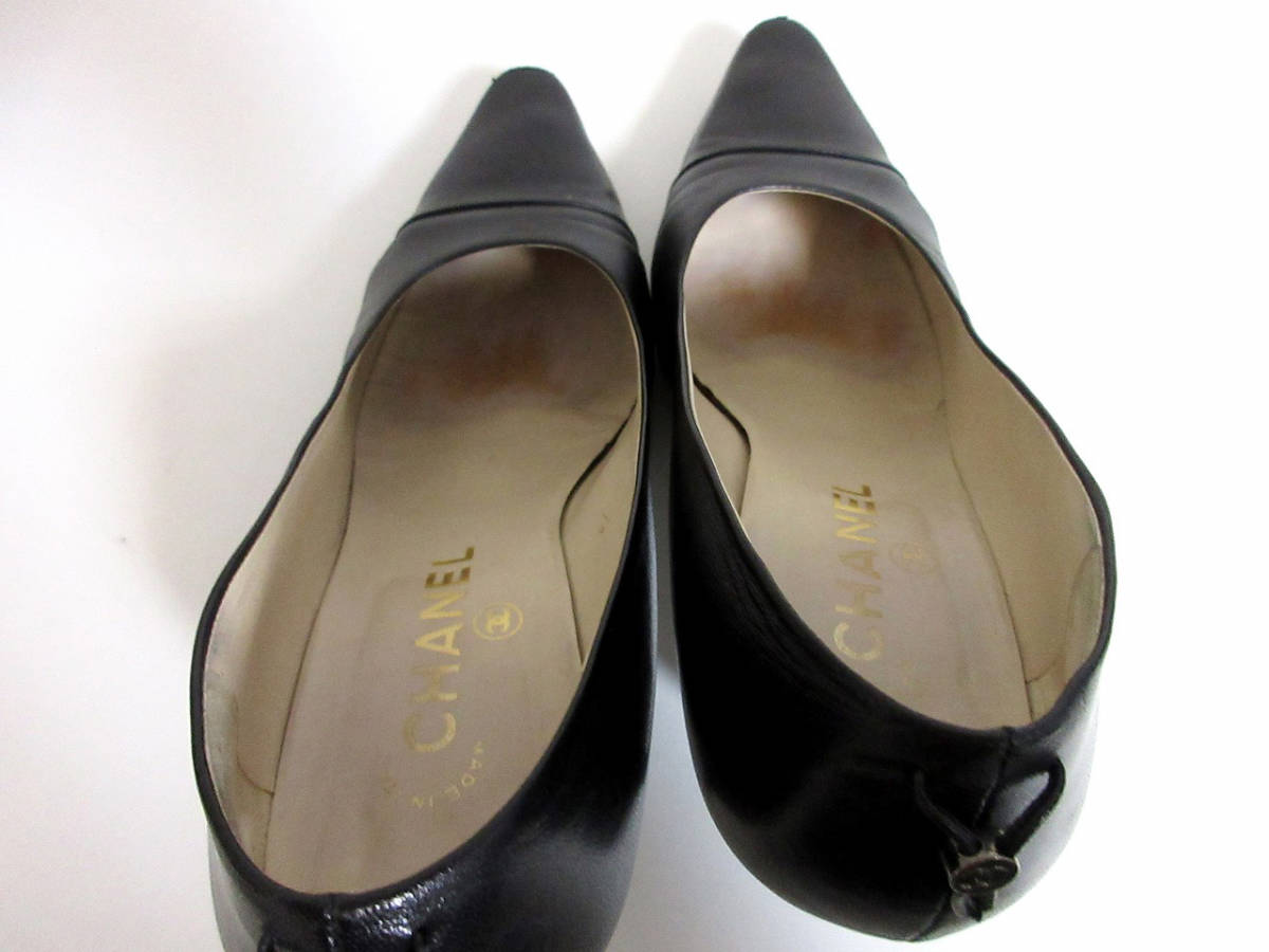 シャネル CHANEL ココマーク レザー ストレートチップ パンプス 黒 ブラック 北2889