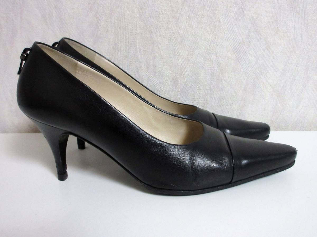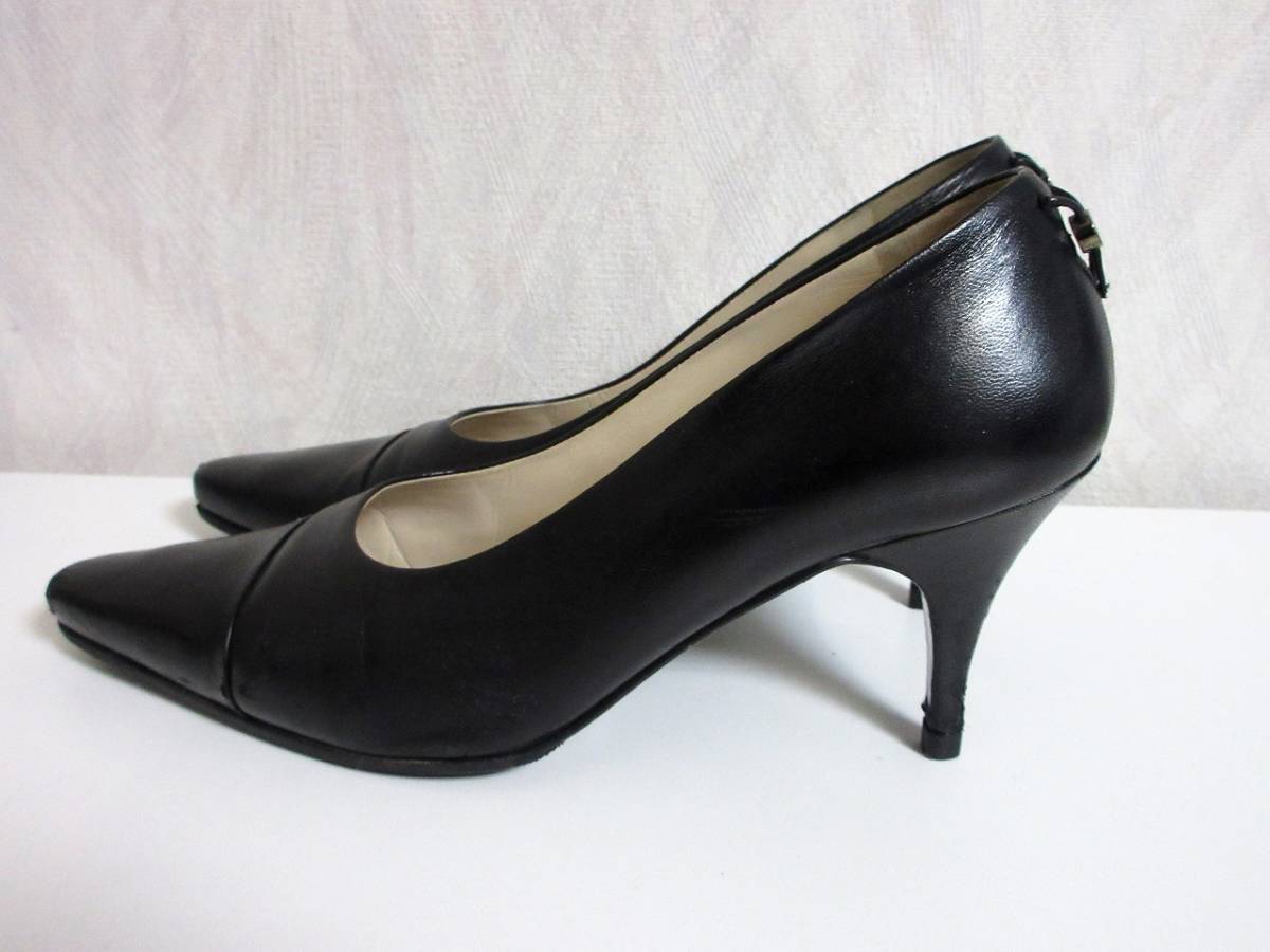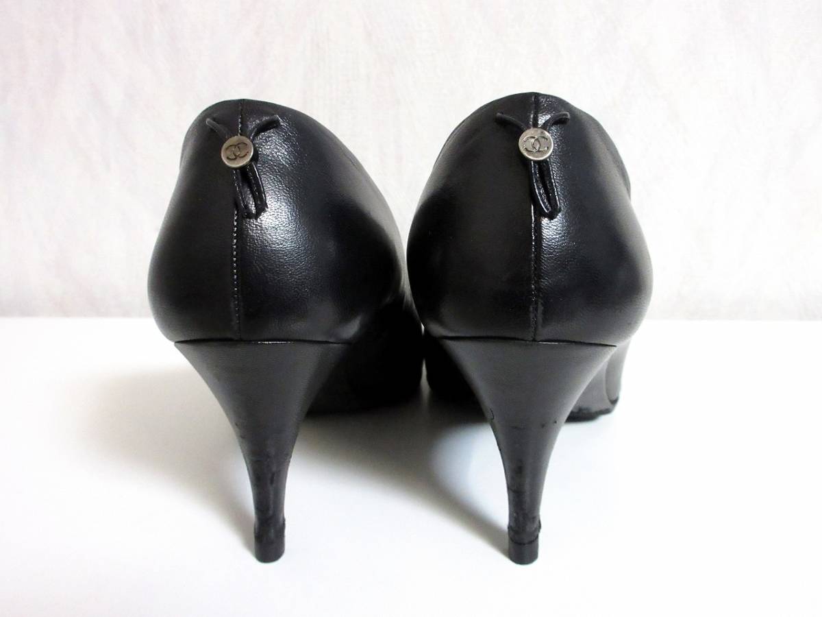 シャネル CHANEL ココマーク レザー ストレートチップ パンプス 黒 ブラック 北2889