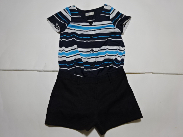 サイズ表示ありませんので、実寸を確認してください。実寸のサイズですが、丈は72.5センチ、身幅は45センチ、股下は6.5センチ、裾幅は31センチです。