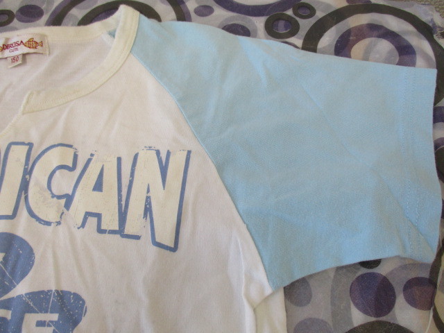 ★DEROSA 半袖Tシャツ ラグラン ロゴ 白×水色(150)