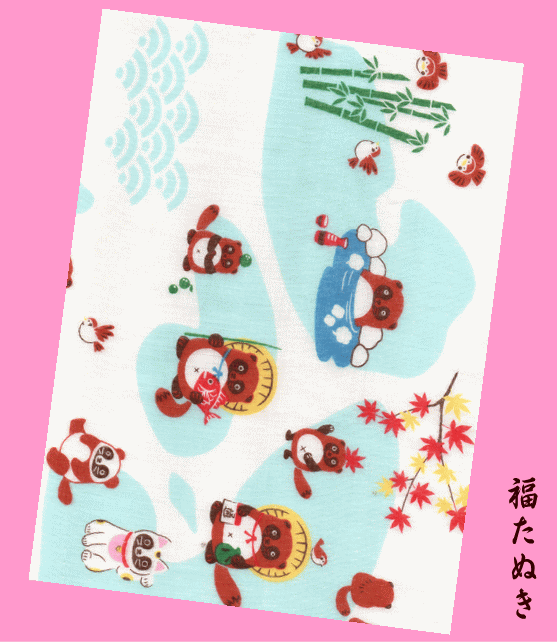 ★福たぬき★ふくこい二重ガーゼ手拭い(手ぬぐい・てぬぐい)★狸・紅葉・温泉・竹・すずめ★