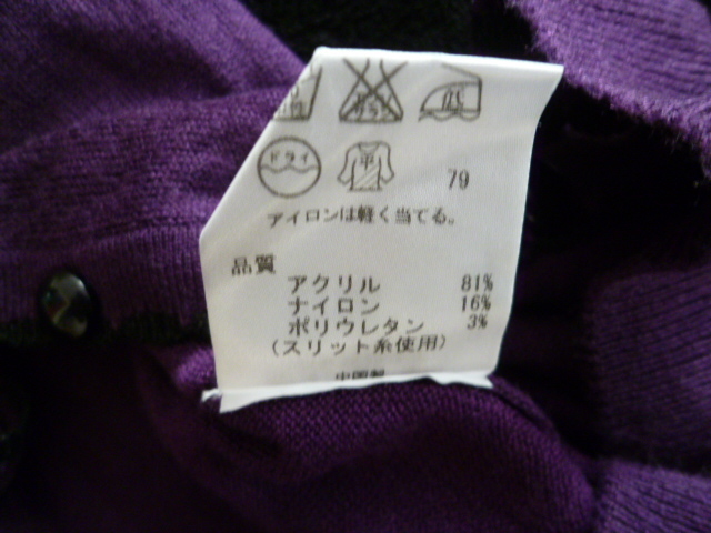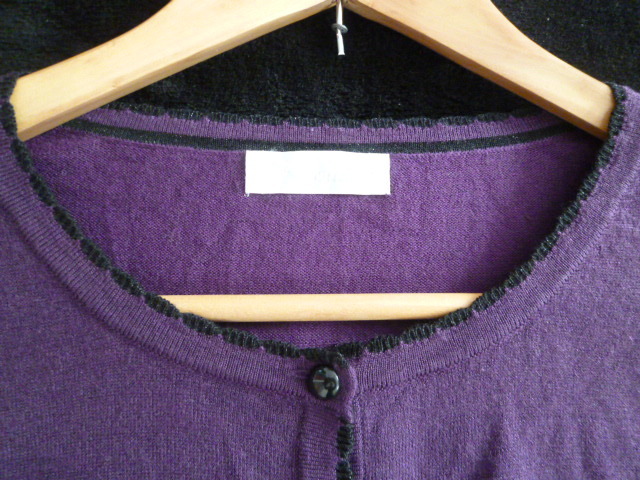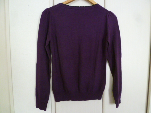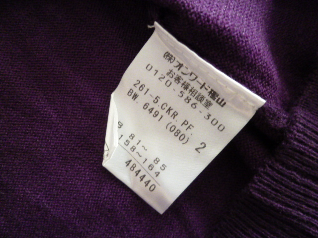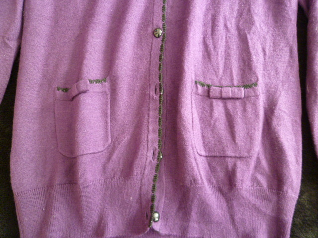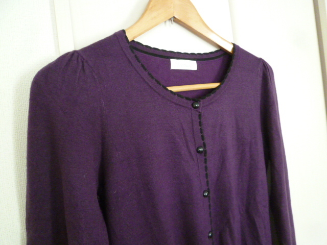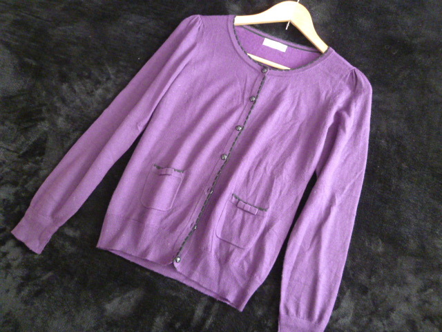 Feroux/フェルゥ○紫バイカラーパイピングリボンポケットニットカーディガン2/オンワード樫山パープル○K1022