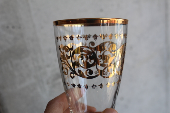 未使用【 佐々木硝子 ボウル タンブラー 6客】昭和レトロ ガラス 金彩 グラス
