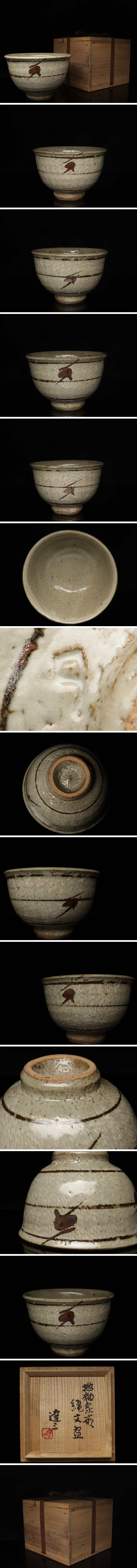 【蔵】人間国宝 島岡達三 作 地釉象嵌 縄文碗 茶碗 茶道具 共箱 本物保証 Y389