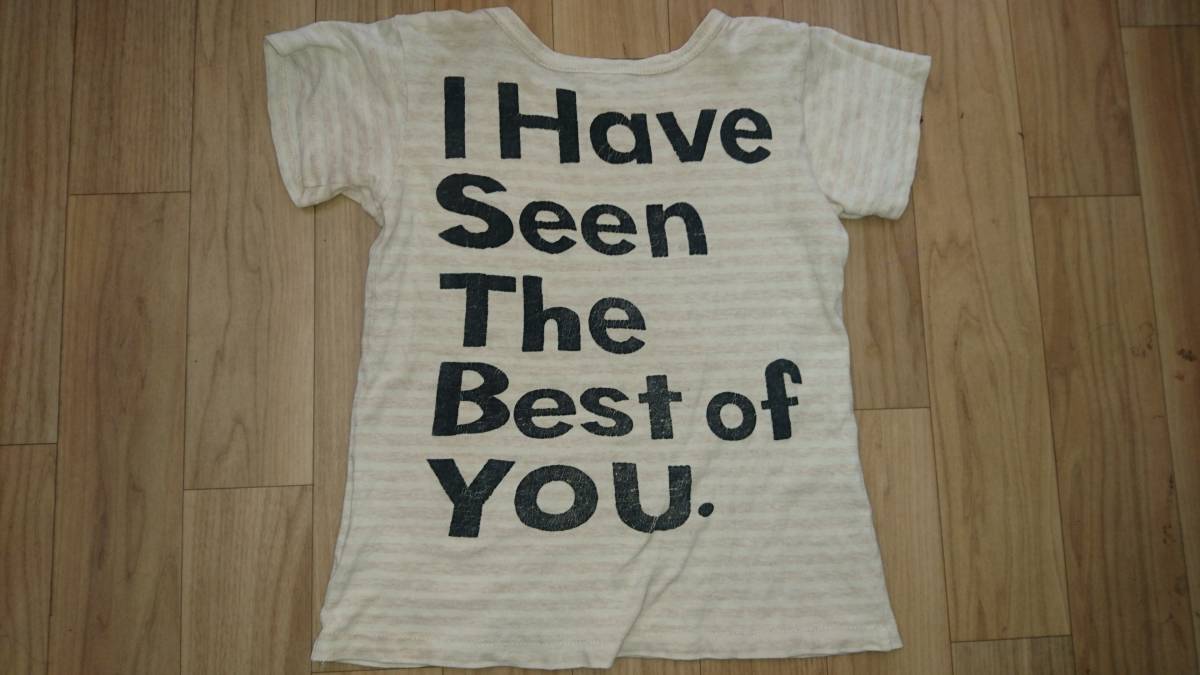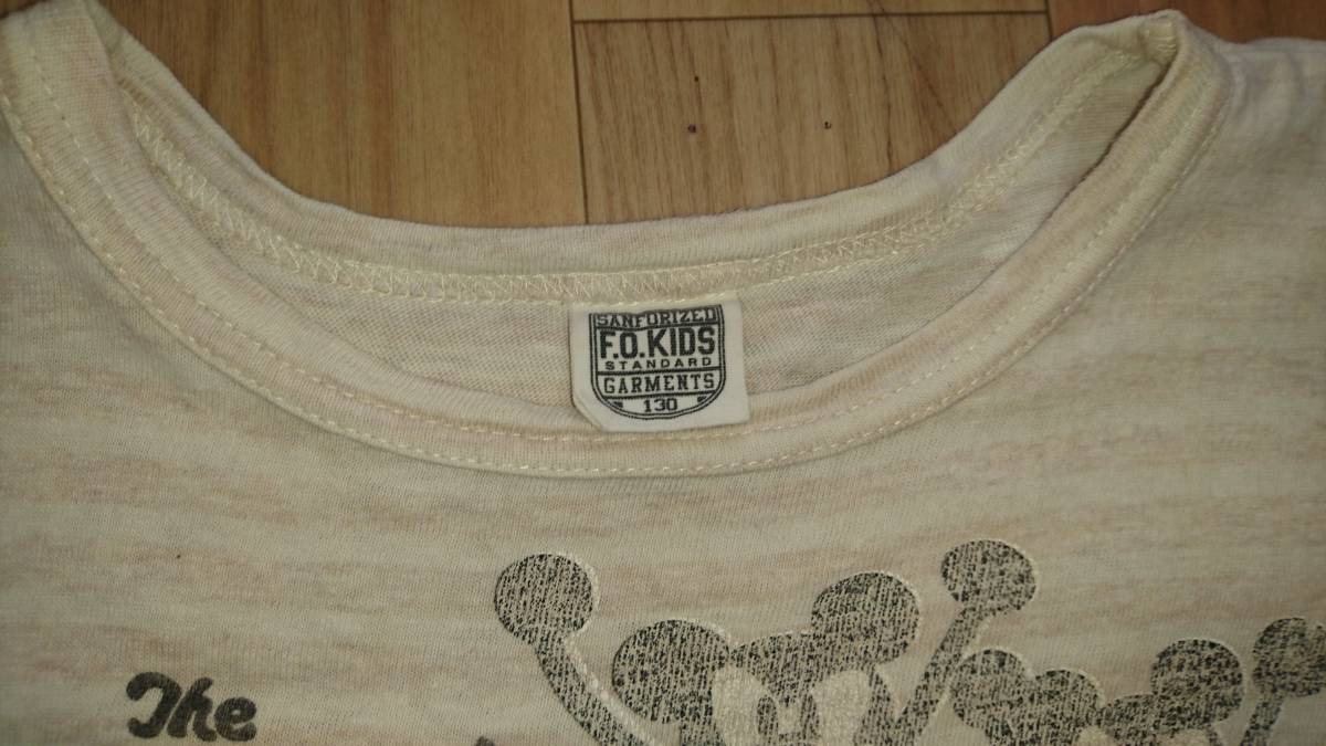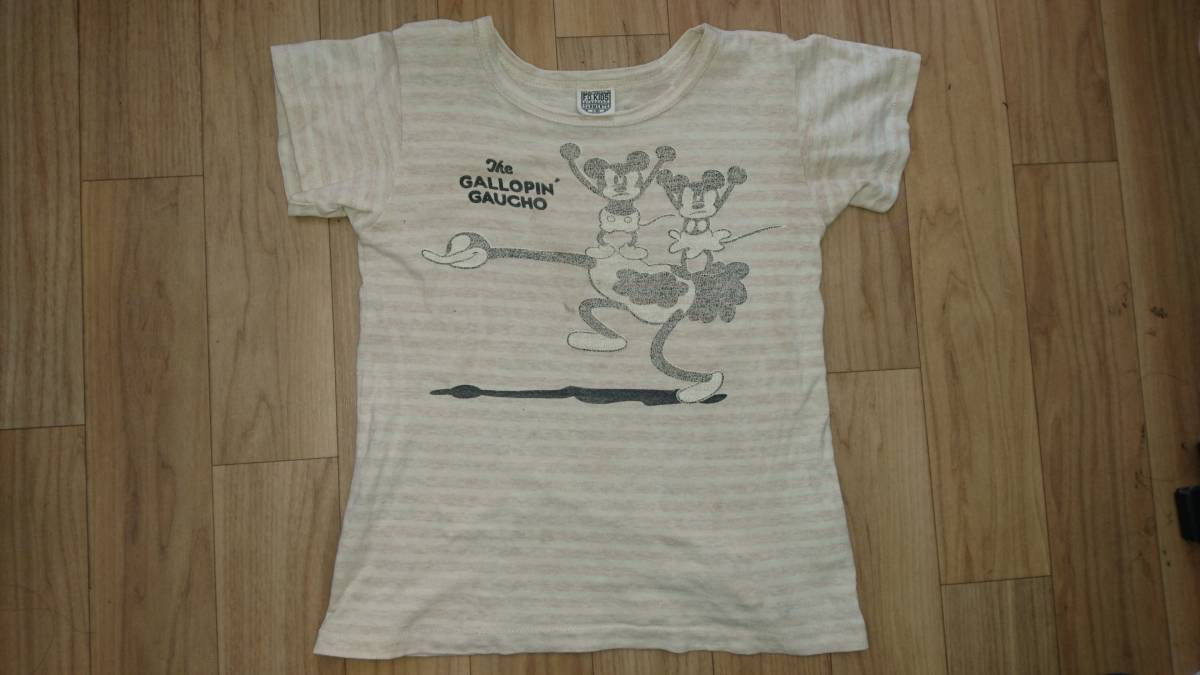 色は、ベージュ×アイボリーのストライプ生地にミッキーマウスのプリントです。