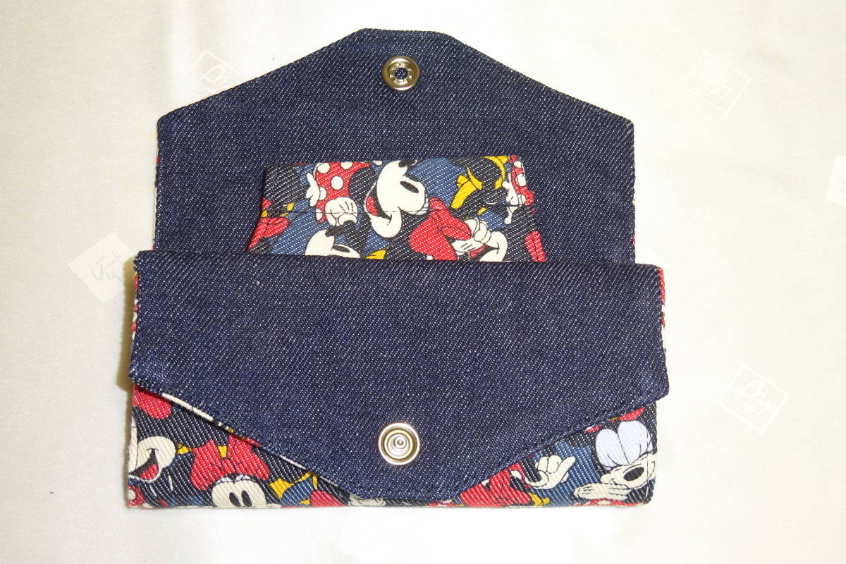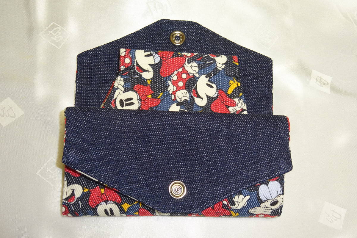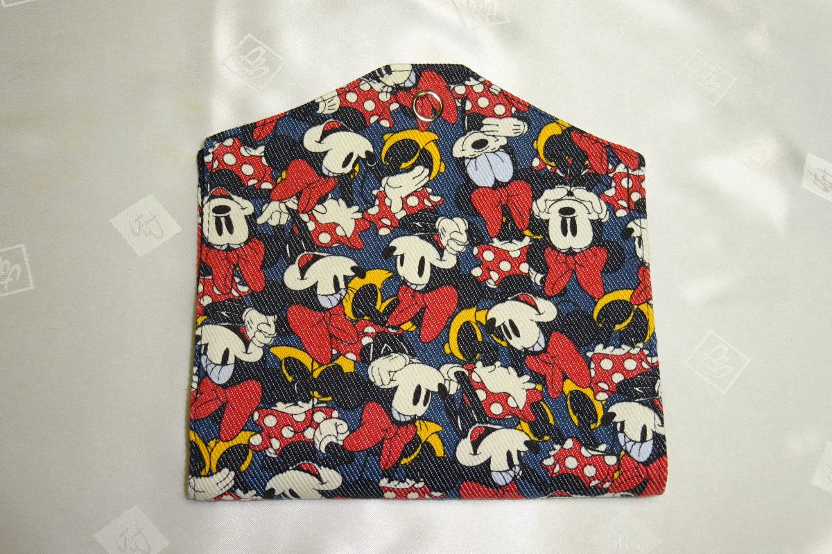 マスクケース 12×14㎝ デニム調 ミニーマウス キャラクター フラットタイプ マスク入れ ハンドメイド